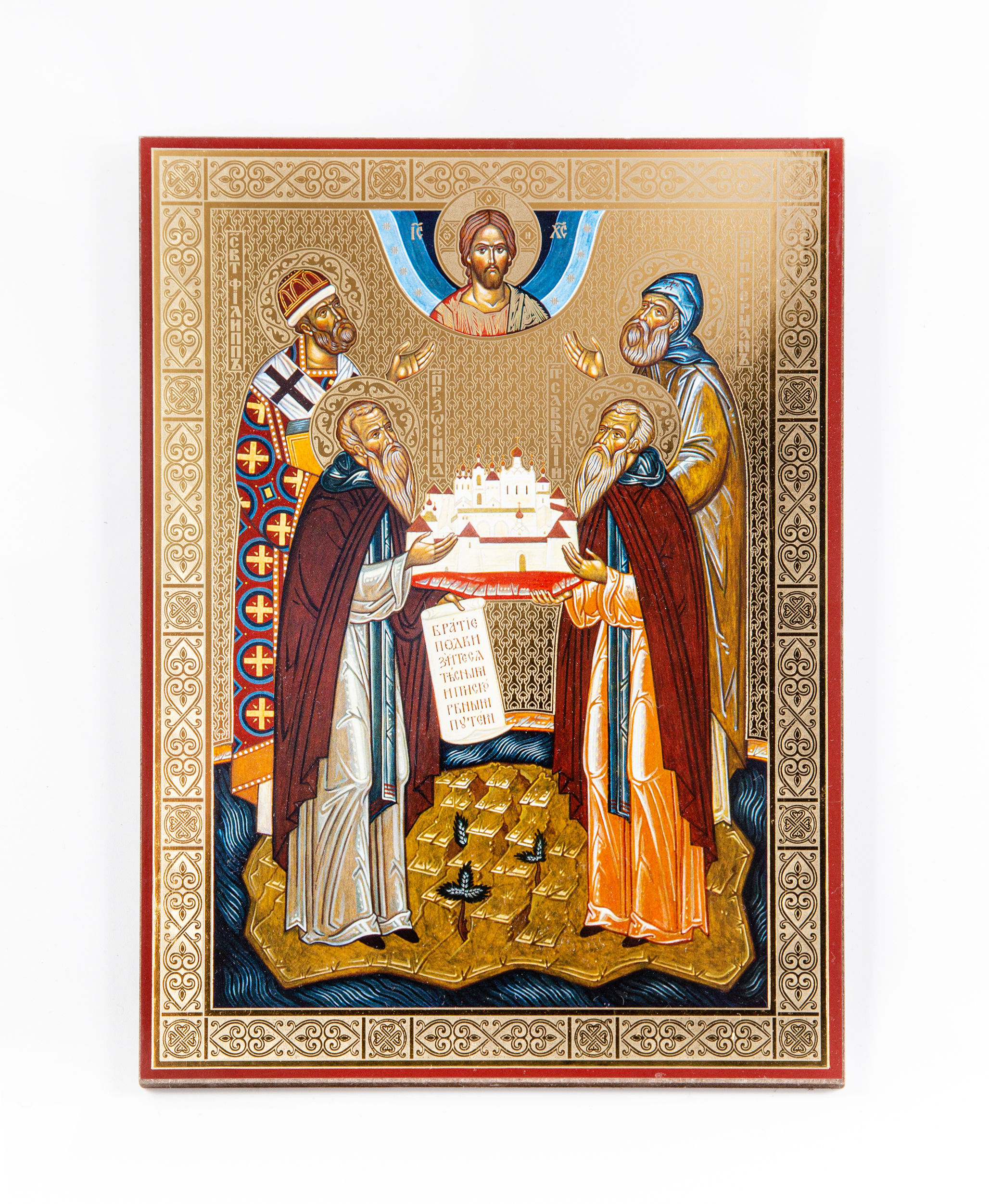 Преподобные Зосима и Савватий с ульями. (13,5*11 см)