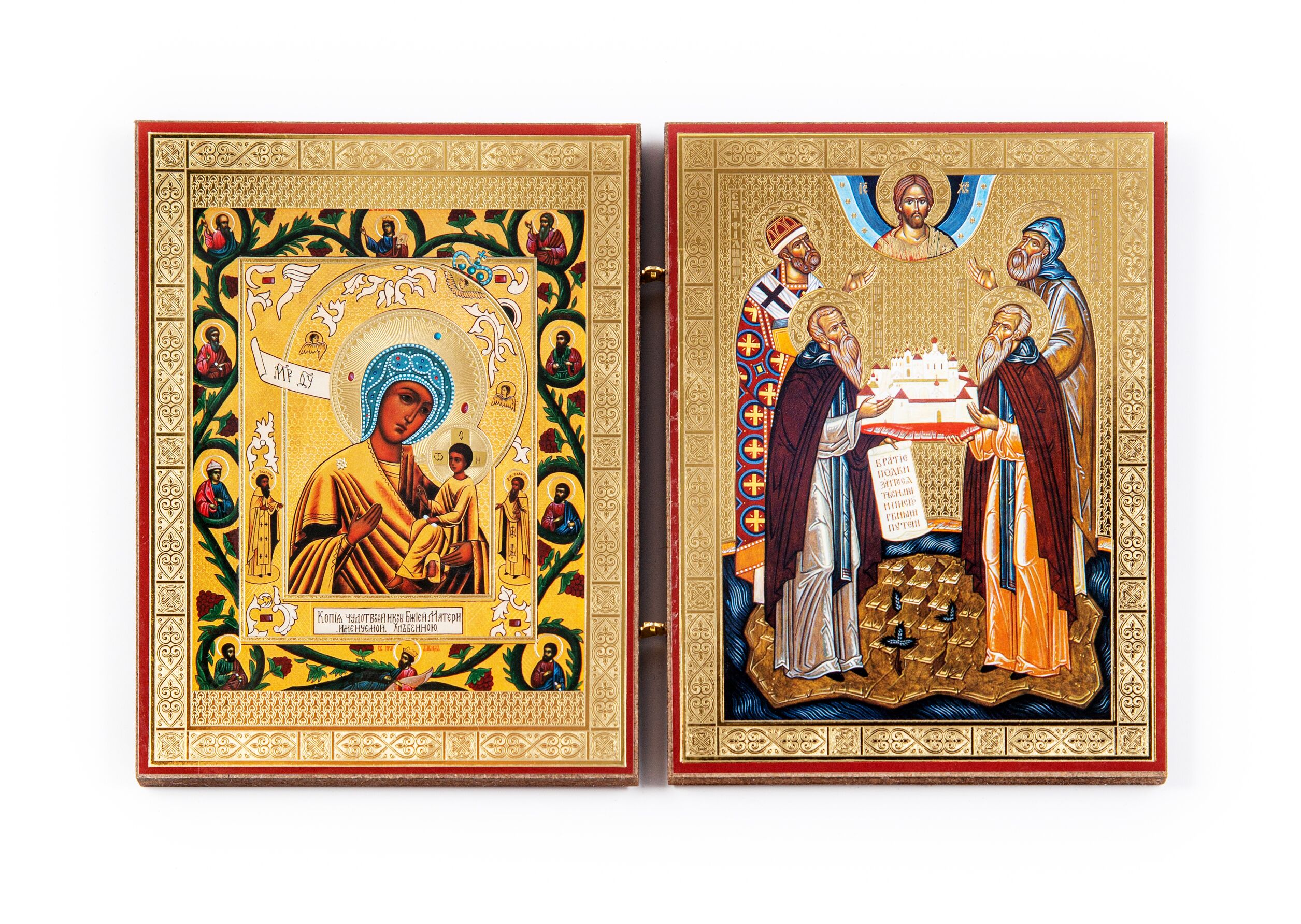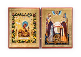 Складень: "икона Божией Матери "Хлебенная" и "преподобные Зосима, Савватий и Герман и святитель Филипп" (малый, 15*11 см)