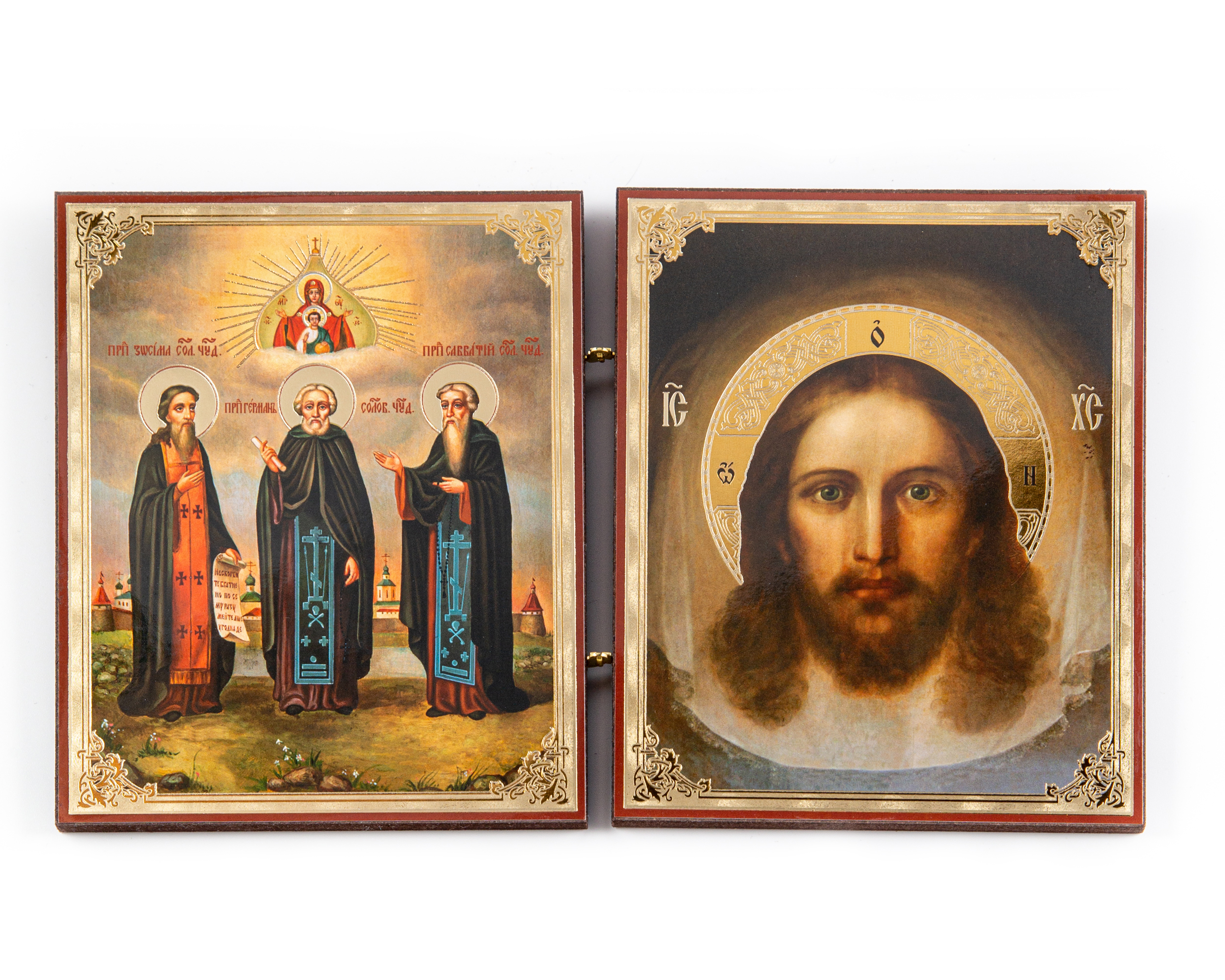 Складень: "Спас на убрусе" и "преподобные Зосима, Савватий и Герман"(малый, 13,5*11 см)