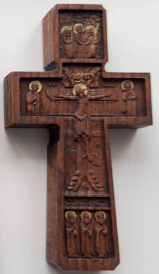 Крест Распятие с Соловецкими преподобными. Бук. 16 см.